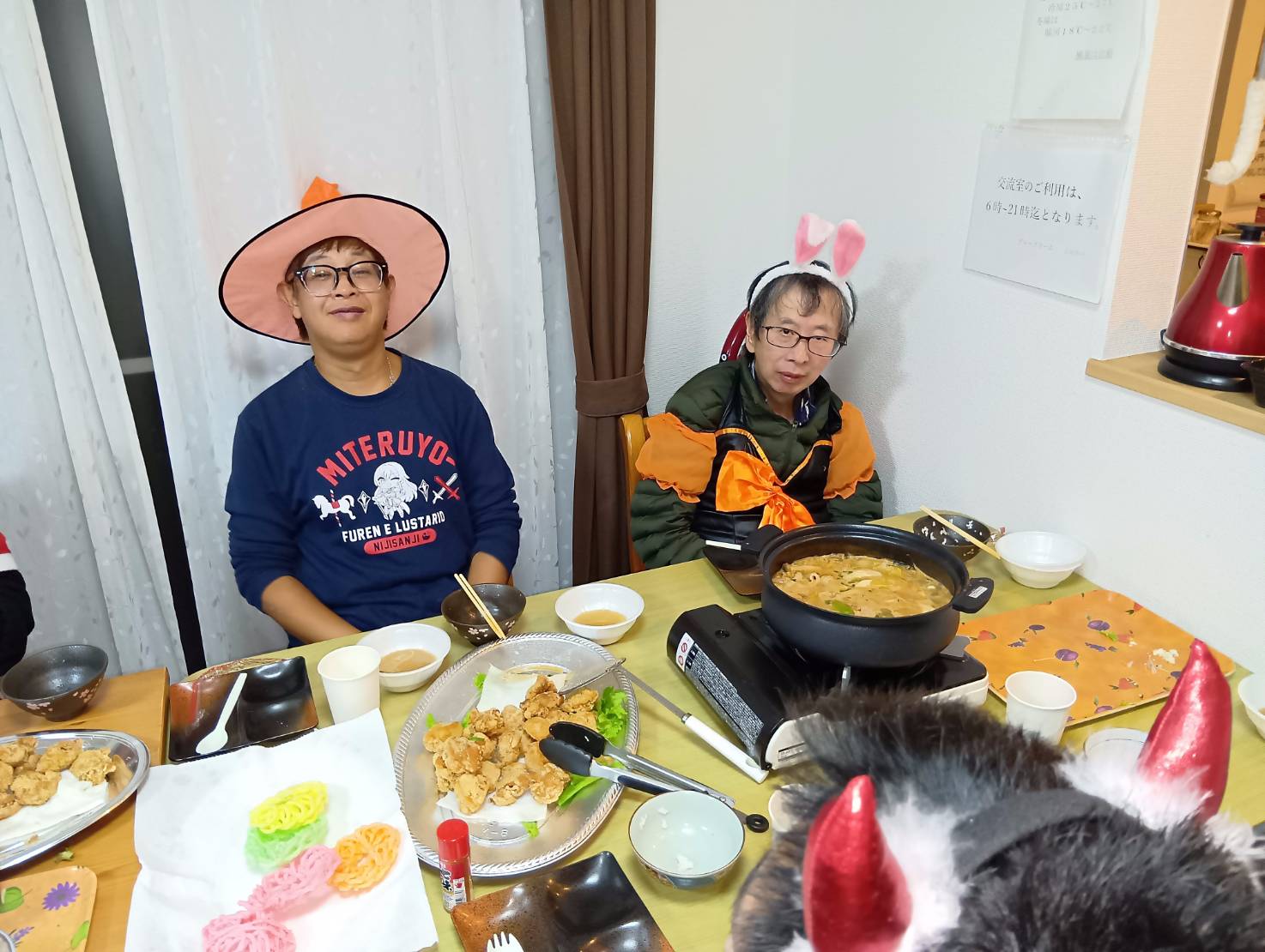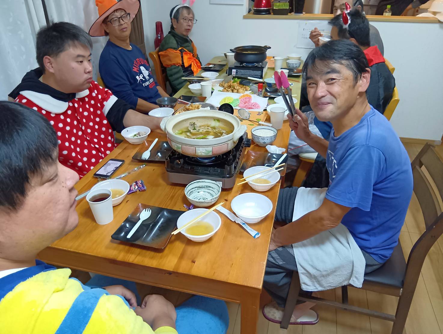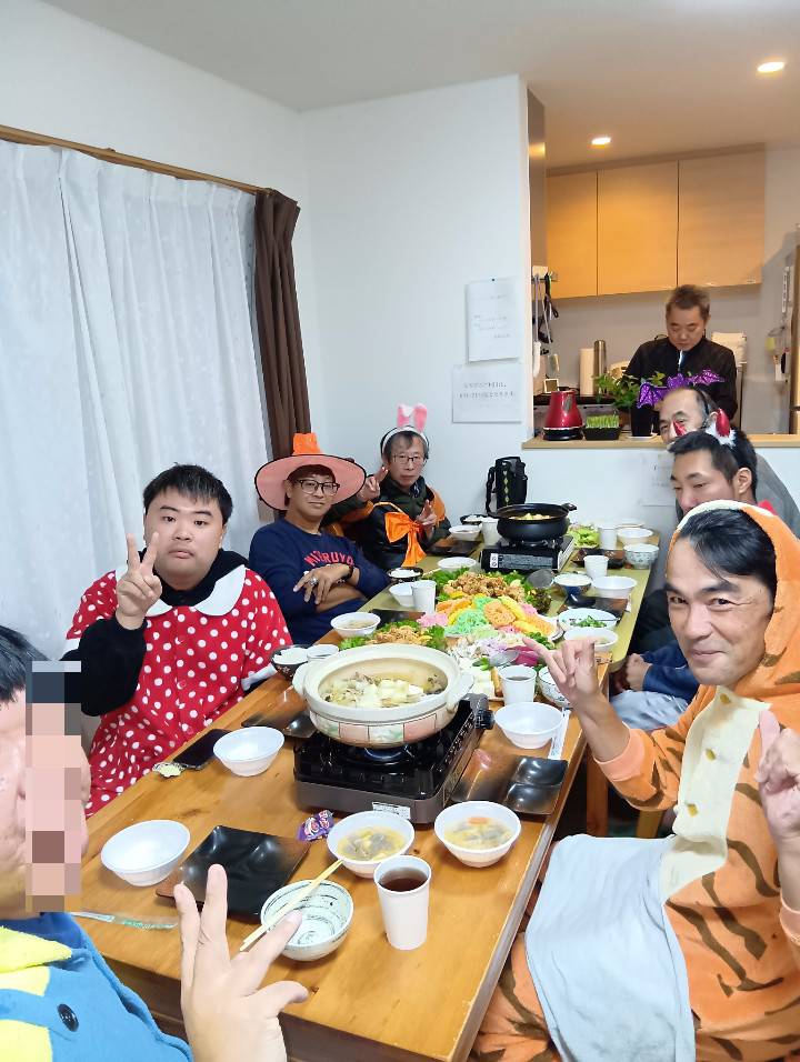 HOME > 活動報告 >ハロウィンパーティー👻 2025年12月8日 男性棟のハロウィンパーティーです(^▽^)/皆さん素敵な仮装をしてとっても楽しそうです✨メニューはお鍋にしましたよ😊大きな鍋がペロッと無くなりました(^^♪ Twitter Share Pocket Hatena LINE