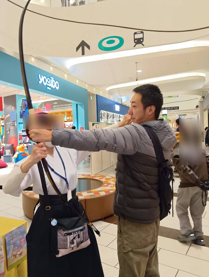HOME > 活動報告 >貴重な体験(^^♪ 2025年12月8日 ホームの皆さんとレイクタウンへお出かけに行ってきました😊そしたら弓矢の体験コーナーがありましたよ(^^)皆さん興味深々!!!結構重いんだな~など、初めての体験で楽しそうでした😊 Twitter Share Pocket Hatena LINE